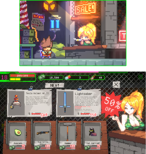 · A shop where you can unlock new equipment and obtain the equipment you want before battle.